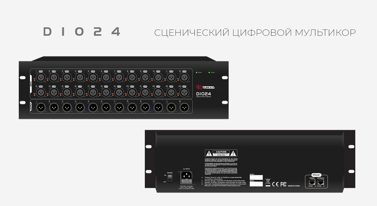 Безусловно, микшер оснащён портом Ethernet, который используется для настройки локальной сети и позволяет подключаться и управлять устройством с помощью приложения на iPad. Для подключения к сети DANTE предусмотрен модуль DANTE32S.В качестве сценического цифрового мультикора предлагается использовать прибор VOLTA DIO24, причём беспроблемно можно подключить сразу два бокса.